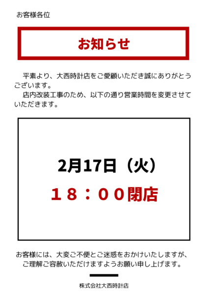 平素より、大西時計店をご愛顧いただき誠にありがとうございます。