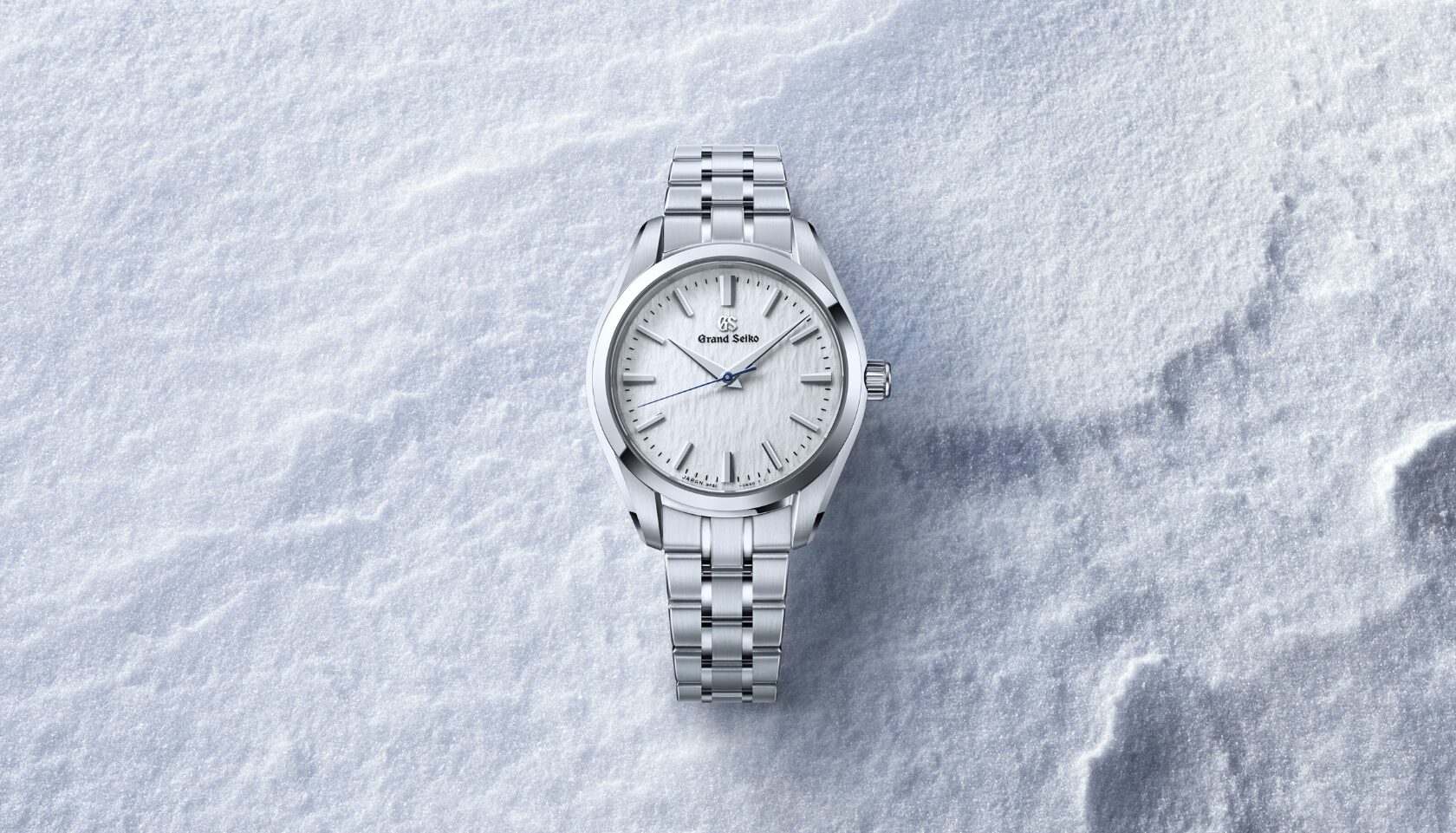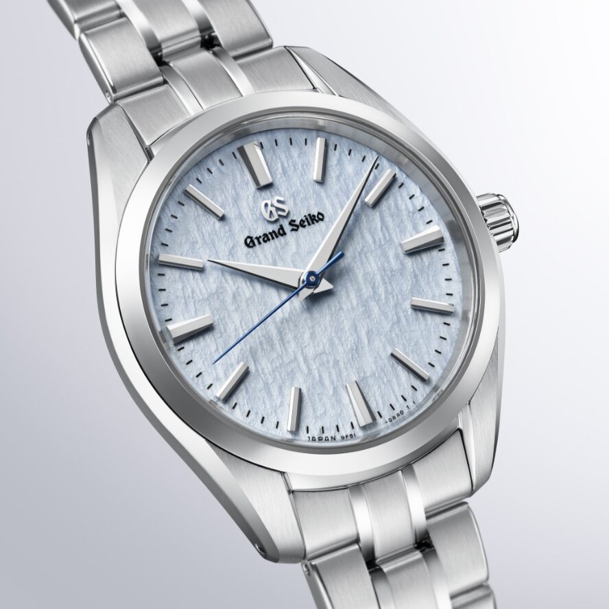 ネイビーカラーのダイヤルは、月あかりに照らされた白樺の樹皮をイメージしました。ステンレススチール製のケースは厚さ9.95mmと薄型に仕上げ、すっきりとしたインデックスやベゼル、ラグの幅が、グランドセイコーのドレスウオッチにふさわしい繊細で優美なる存在感を演出しています。